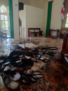 Los cuatro menores acusados de profanar y prender fuego a varios mobiliarios y libros en la parroquia Nuestra Señora de La Milagrosa en el distrito