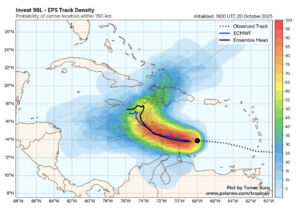 Los principales centros meteorológicos de Estados Unidos y Europa vigilan el desarrollo de un sistema de baja presión en el mar Caribe central que podría convertirse en la tormenta tropical